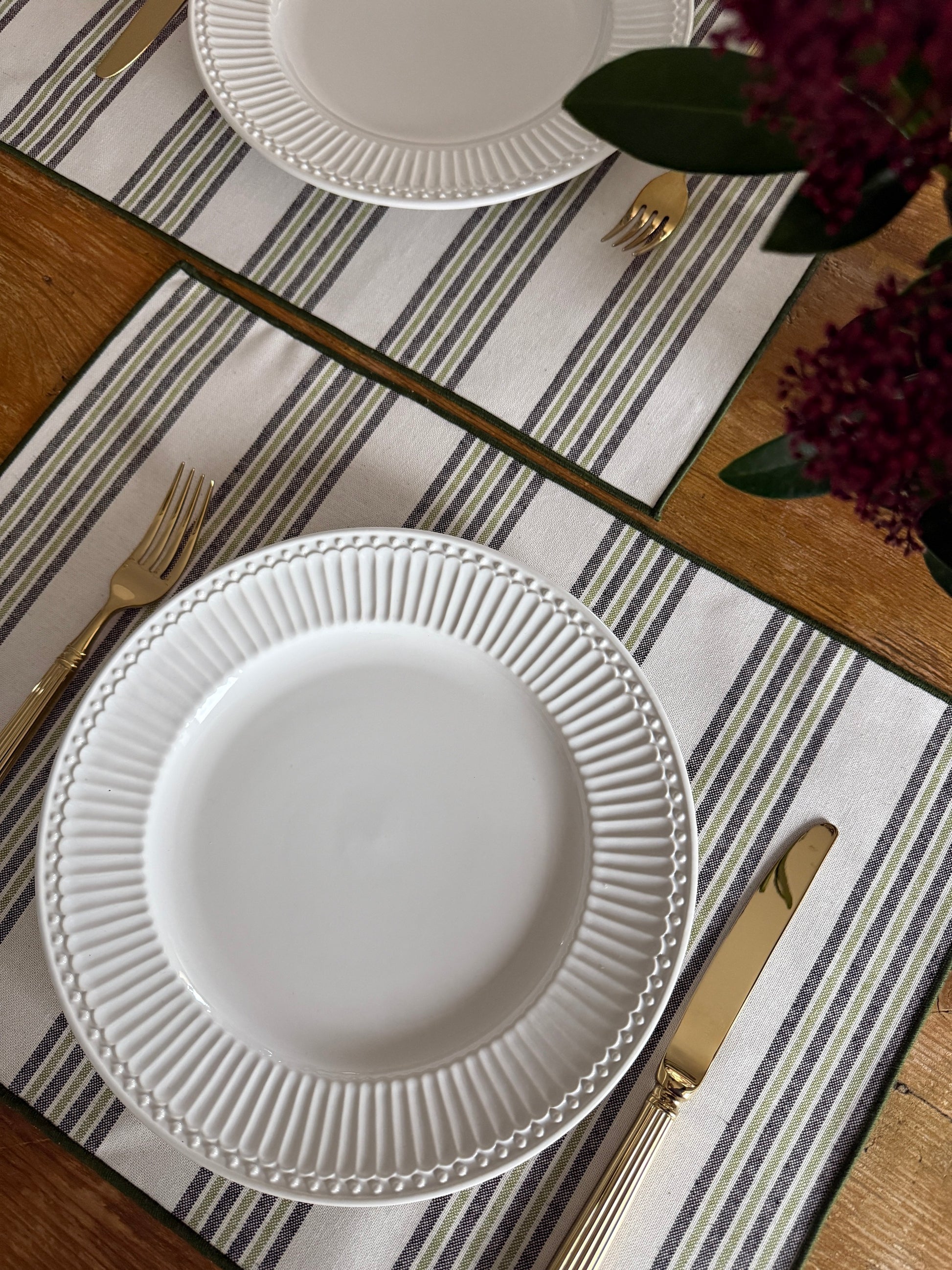 Confeccionado en algodón resinado, resistente y práctico para el día a día. Un diseño fresco y atemporal que funciona igual de bien en comidas al aire libre como en cenas acogedoras en casa.