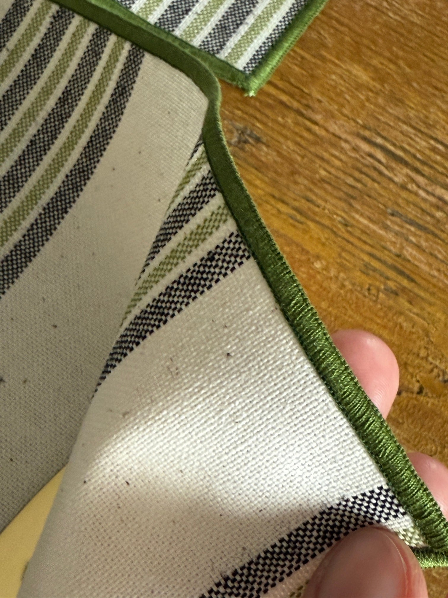 Individual de algodón orgánico resinado (antimanchas) con estampado Aspen y ribete verde.